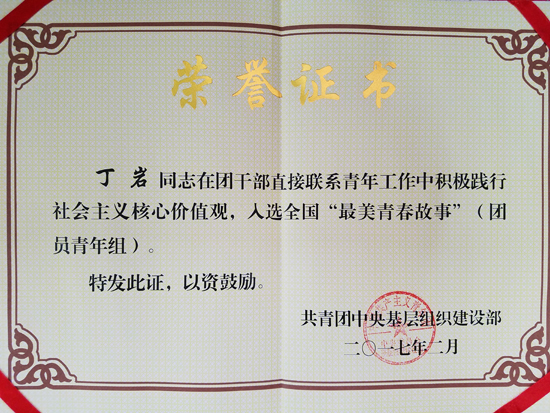 日前,团中央公布了全国团干部直接联系青年工作“最美青春故事”首批入选人员名单,我校社会发展与公共管理学院2015级硕士研究生丁岩成功入选,这是我省唯一一名入选的高校团员青年。