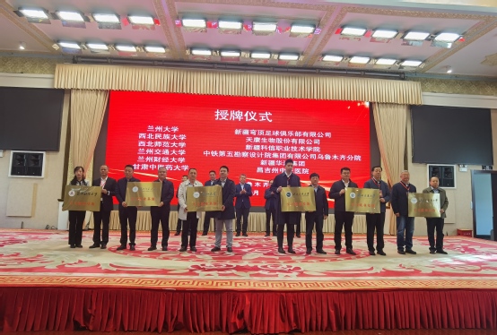 在甘肃省高校赴新疆访企拓岗政校企交流座谈会和2024届高校毕业生就业推介会上,张明军与塔城地区教育局、人社局,皮山县教育局,精河县教育局,江苏徐州矿务集团新疆公司,新疆新冀能源化工有限公司等20余家企事业单位代表进行洽谈交流,与新疆科信职业技术学院建立校企合作关系,并为合作单位授牌。