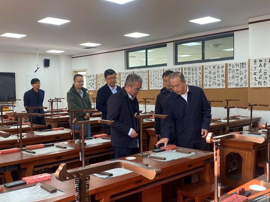 会前,王占仁检查了学校语言文字培训测试站、微格教室、板书训练教室、信息化教学技能实验室、STEAM创新教育人才培养基地、学前教育实验教学中心等师范生技能训练场所,查阅了专业认证各类文档材料。