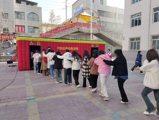 11月24日中午,西北师大党委保卫部、党委学生工作部联合安宁区消防救援大队,在兰天学生公寓2号楼前组织开展2023年秋季学期安全疏散消防演练。