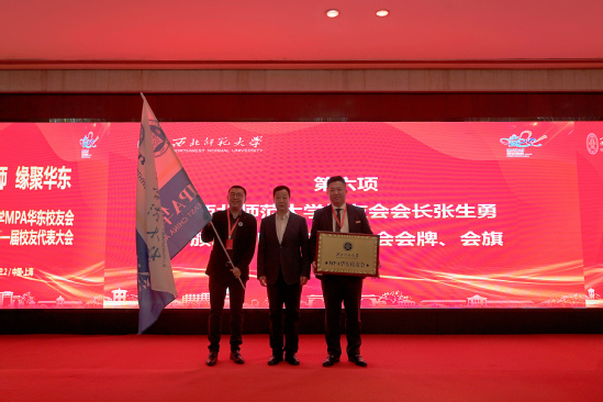 张生勇向MPA华东校友会授会旗、会牌,并为会长、秘书长等颁发铭牌与聘书。他代表学校对MPA华东校友会的成立表示祝贺,向与会校友介绍了学校的发展情况。张生勇希望MPA华东校友会进一步凝聚校友力量,传播母校声音,展示校友形象,加强校友和母校的联络沟通,组织校友回访母校,校友企业到校组团招聘,为母校学子提供实习实践、就业岗位,助推母校“双一流”建设贡献更多智慧和力量!