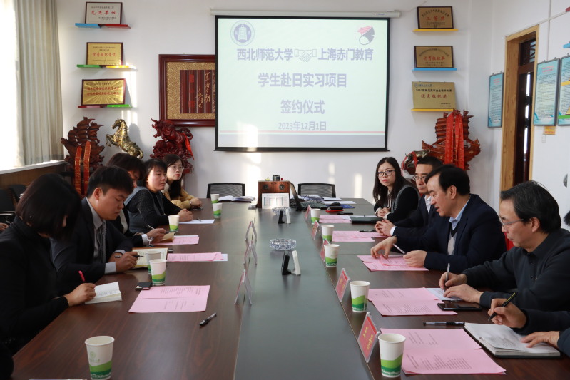 12月1日,西北师大外国语学院举行日语专业学生赴日实习项目签约仪式。西北师大党委常委、副校长田澍,上海赤门教育科技有限公司刘洋吉总经理出席,西北师大国际交流合作处、外国语学院负责人及日语专业师生参加。
