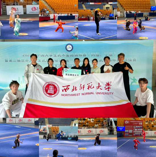 西北师大体育学院8名运动健儿与来自全国100所高校近千名运动员同台竞技。经过5天激烈的角逐,西师学子发扬顽强拼搏精神,夺得2金1银的好成绩,实现了历史性的突破。其中,朱茂鑫获24式太极拳金牌、太极八法五步第六名、李恒宇获八极拳金牌、刘思岩获杨式太极拳银牌、安妮获吴式太极拳第四名、32式太极剑第四名、王增瑞获地躺拳第四名、柳林轩获八卦掌第五名、张帆获女子劈挂拳第八名。