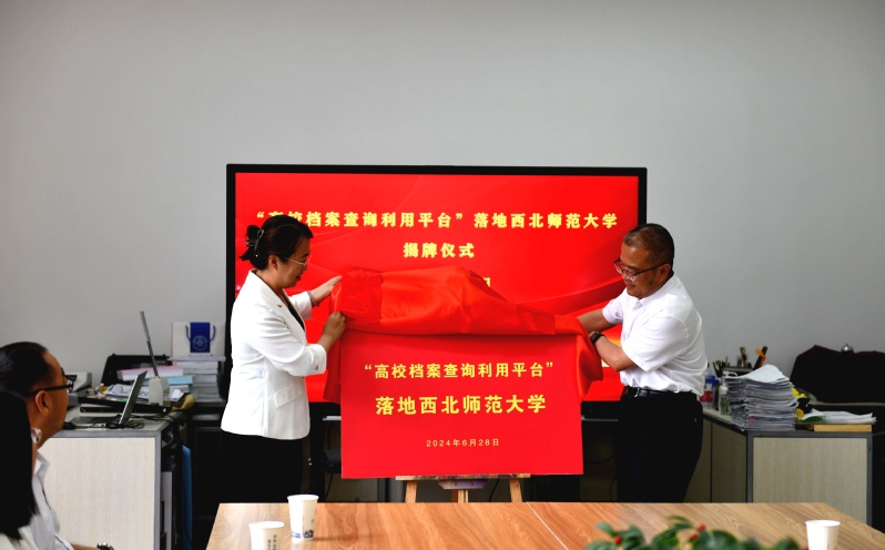 6月28日,西北师大举行“高校档案查询利用平台”揭牌仪式活动,甘肃省档案馆相关负责人、副校长张明军为仪式揭幕。甘肃省档案馆各处室负责人、全省各地州市档案馆馆长、甘肃省档案学会第九届理事会会员代表等150人参加。