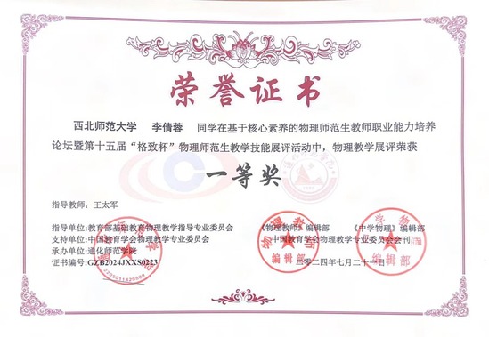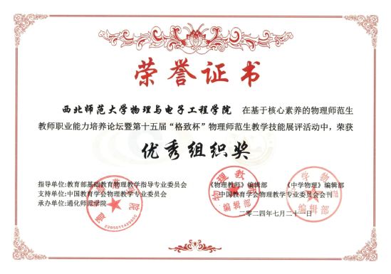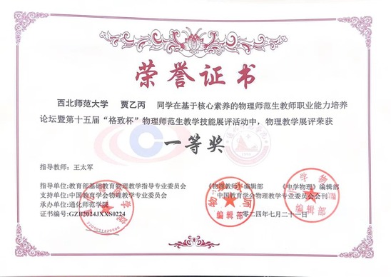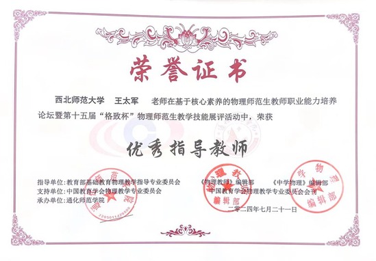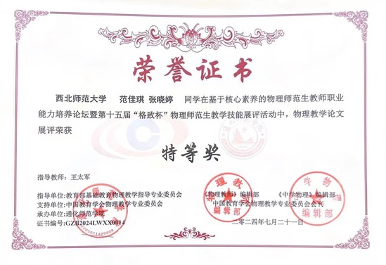 西北师大在第15届“格致杯”全国物理教学展评活动中获佳绩