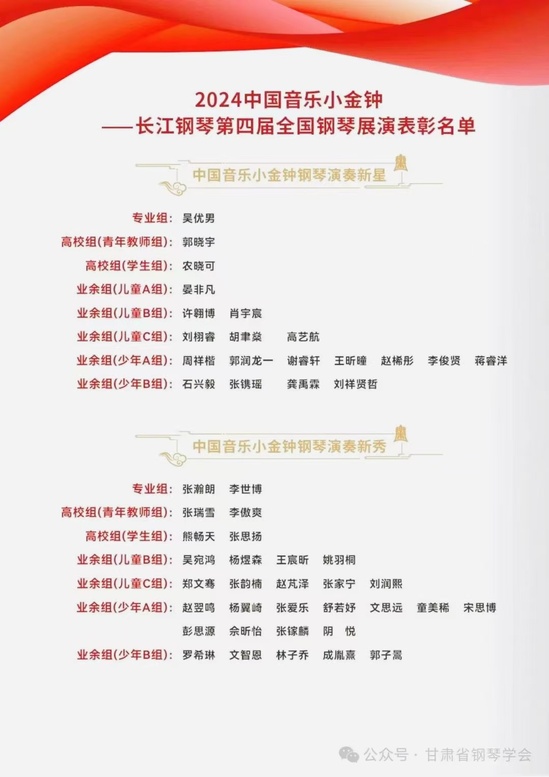 喜报!西北师大在2024中国音乐小金钟——长江钢琴第四届全国钢琴展演中荣获佳绩