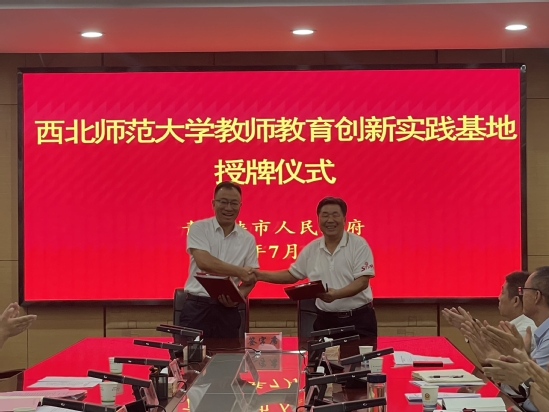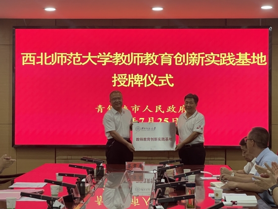 7月25日,西北师大“教师教育创新实践基地”授牌仪式在宁夏青铜峡市举行,副校长张明军,青铜峡市相关负责人出席仪式,西北师大教务处、研究生院、教师教育学院,青铜峡市教育局相关负责人参加。