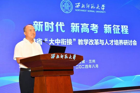 最后王占仁对本次研讨会进行了总结,他认为本次会议是落实党的二十届三中全会关于实施科教兴国、人才强国、创新驱动发展战略的一次甘肃实践会;是我省实施新高考改革的一次经验总结会;是推动我省“大中衔接”教学改革与人才培养的一次战略研讨会。他期望与会学校要进一步加强合作与交流,真正做到理念、机制与平台的“大中衔接”,共享共建、协同发展,为教育发展提质增效贡献力量。