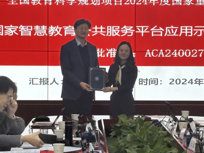 王雯为评审组组长韩锡斌教授颁发了证书,并对项目开题会要求、流程进行说明。