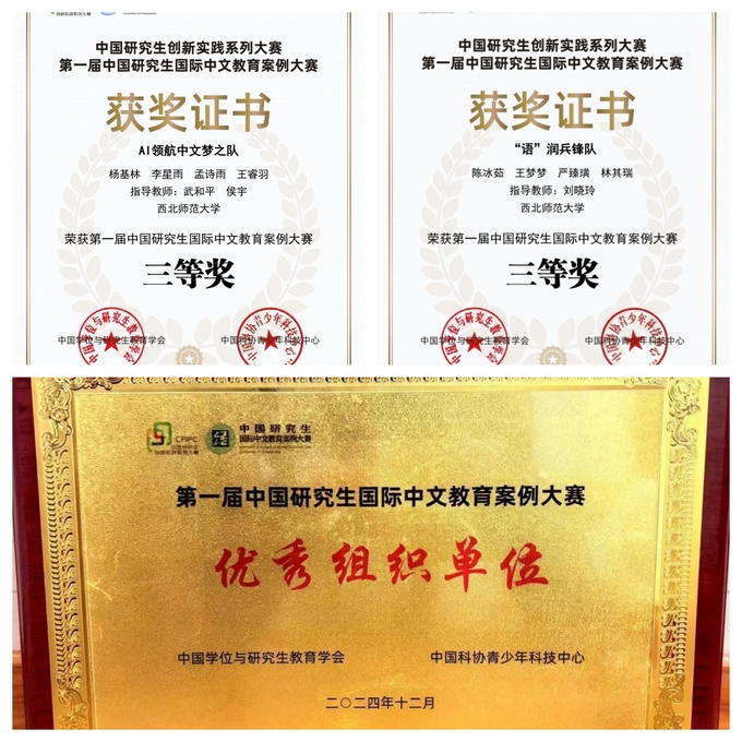 西北师大“AI领航中文梦之队”(指导教师:武和平、侯宇,成员:杨基林、李星雨、孟诗雨、王睿羽)聚焦国际中文教育新技术赛道,凭借AI赋能中文教育的创新创教学法,突破传统教学困境,展现利用新技术提升教学质量的探索精神。“语”润兵锋队(指导教师:刘晓玲,成员:陈冰茹、王梦梦、严臻璜、林其瑞)在新应用赛道发力,通过观摩“中文+”特色课程总结心得,为国际中文教育开拓新研究方向,助力全球文化交流融合。