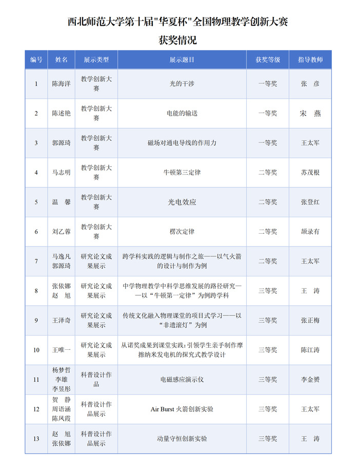 西师学子在第十届华夏杯全国物理教学创新大赛中荣获佳绩
